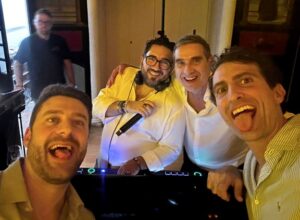 Fra un drink, quattro salti, scambi di idee e progetti e buon cibo, arriviamo al tradizionale taglio della torta. Quest’anno a quattro mani, i tre presidenti e l’immancabile RAFA